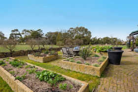 - Elegantly crafted raised garden beds, perfect for a kitchen garden to cultivate herbs, vegetables, and flowers.