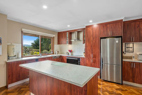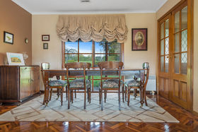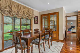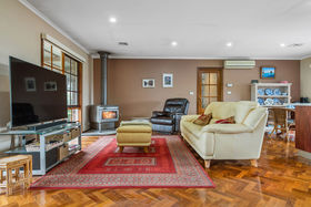 The heart of the home is a well-equipped kitchen and meals area, seamlessly connected to a generous family zone. A sunken lounge and formal dining area provide additional space for entertaining or relaxation. Featuring parquetry flooring, a wood heater, and a reverse-cycle split system, the home is comfortable year-round.