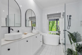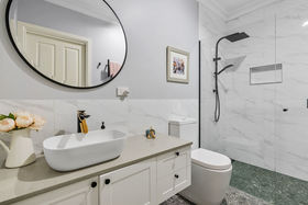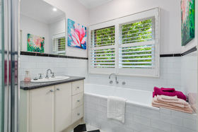 This home offers four spacious bedrooms plus a study, each offering generous wardrobe space. The master suite is a true retreat with its walk-in robe with mirrored doors and a luxurious ensuite featuring a Japanese soaker bath and double vanity.
