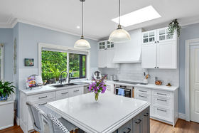 The kitchen stands out with its skylight, island bench, Bosch cooktop and oven, plumbed fridge, dishwasher, a 3 function Zipp HydroTap (hot, chilled and sparkling water), and Butler's pantry.