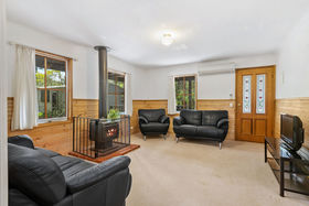 Instantly appealing the main residence has the wow factor with a storybook style cottage with wide verandahs inviting you into a warm and relaxing family home. At its heart is the stunning living room with a striking stone fireplace with Eureka wood heater as it's centre piece. An ideal place for cosy family gatherings with soaring ceilings and light-filled spaces overlooking leafy outlooks. Additional heating/cooling is provided by split system heating and cooling for added convenience.